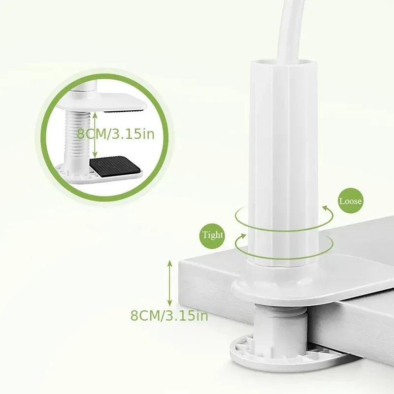 - مشبك قوي يثبت على الطاولات، السرير، أو المكتب